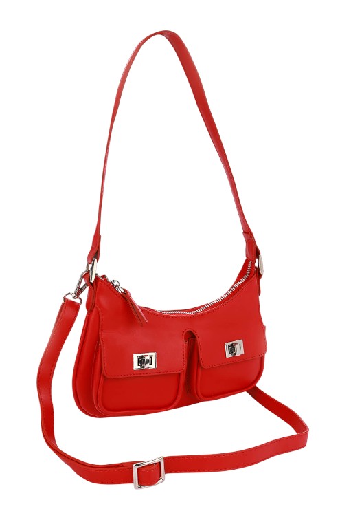 Het is een damestas van 100% PU leer.De voering is gemaakt van 60% katoen en 40% polyester.Er worden geen dierlijke materialen gebruikt in de ontwerpen.Geheel gemaakt van veganistisch leer.Er werd gebruik gemaakt van zamak accessoires.Het heeft een metalen ritssluiting.Dankzij de lange, verstelbare riem kun je de tas als crossbodytas gebruiken.De accessoires zijn zilverkleurig.Breedte: 9 cm Lengte: 14 cm Breedte: 29 cm Hanger: 120-140 cm .DUURZAAM PU-LEER Dit natuur- en levensvriendelijke product wordt geproduceerd volgens Europese normen. Het geeft het product meerwaarde vanwege de duurzame, niet-verharende structuur.