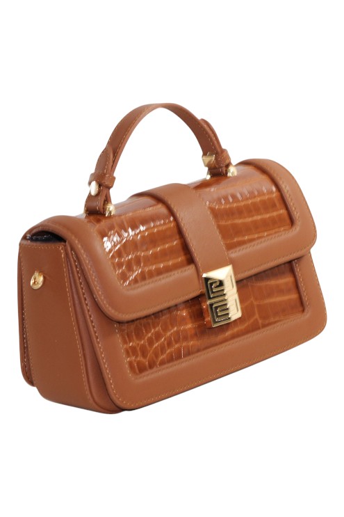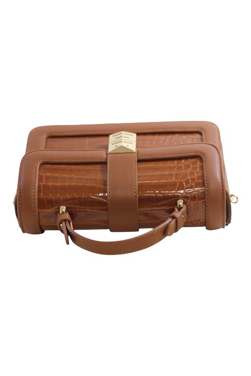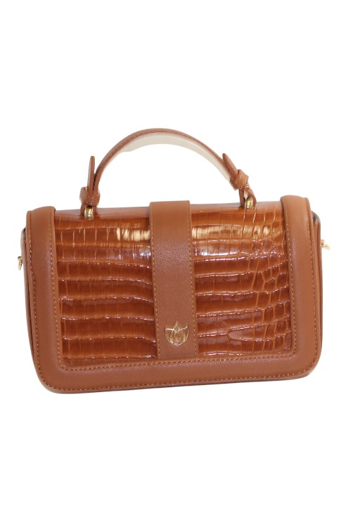 Deze stijlvolle handtas is vervaardigd van duurzaam, diervriendelijk kunstleer met een opvallende gestructureerde krokodillenlook. De combinatie van een stevige bovenhandgreep en een afneembare, verstelbare schouderriem maakt deze tas praktisch en flexibel voor verschillende gelegenheden. De metalen sluiting in het midden voegt een verfijnde en tijdloze uitstraling toe aan het ontwerp.