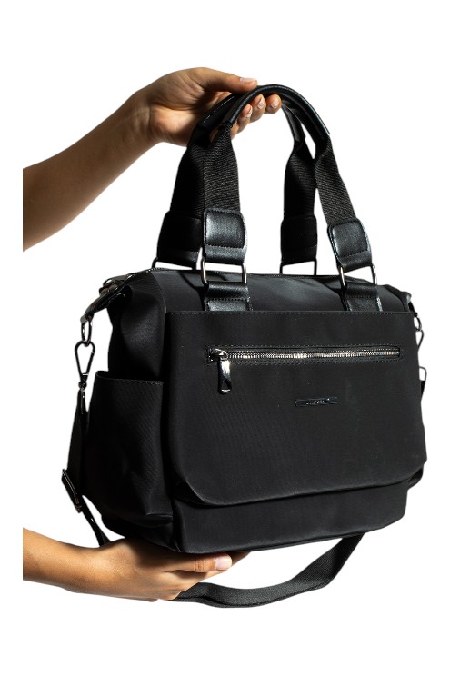 Afmetingen: Breedte 33 cm, Lengte 22 cm, Basisbreedte 11 cm.Minimalistisch design: Strak en elegant, past moeiteloos bij elke outfit.Ruime opbergruimte: De tas heeft 5 onafhankelijke compartimenten met rits aan de buitenkant en een klein ritsvak aan de binnenkant om uw spullen georganiseerd op te bergen.Milieuvriendelijk materiaal: Gemaakt van duurzame, milieuvriendelijke materialen.Duurzaam en stijlvol: Gemaakt van 100% textielmateriaal voor een perfecte mix van duurzaamheid en elegantie.Veelzijdige draagmogelijkheden: De tas heeft zowel een schouderband als een handvat, zodat u hem in uw hand, over uw schouder of schuin over uw lichaam kunt dragen.Ruim interieur: biedt ruimte aan alles wat u nodig hebt, zoals een laptop, iPad, sjaal, paraplu en meer. Ideaal voor dagelijks gebruik of professionele omgevingen.Elegant materiaal: De constructie van satijn en mat leer voegt een verfijnde toets toe en past bij verschillende texturen en stoffen.Praktische inhoud: 4,5 liter opbergruimte om eenvoudig aan uw dagelijkse behoeften te voldoen.Duurzame productie: Voorzien van het TM-oorsprongslabel, wat een betrouwbaar en kwalitatief hoogstaand productieproces garandeert.Reinigingsinstructies: Voor langdurig gebruik, reinigen volgens de wasvoorschriften voor type 4.
