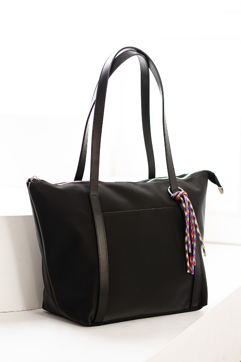 Een eenvoudig, rechthoekige tas met open bovenkant en twee handvatten. ideaal voor dagelijks gebruik en als draagtas voor boodschappen of werkspullen.